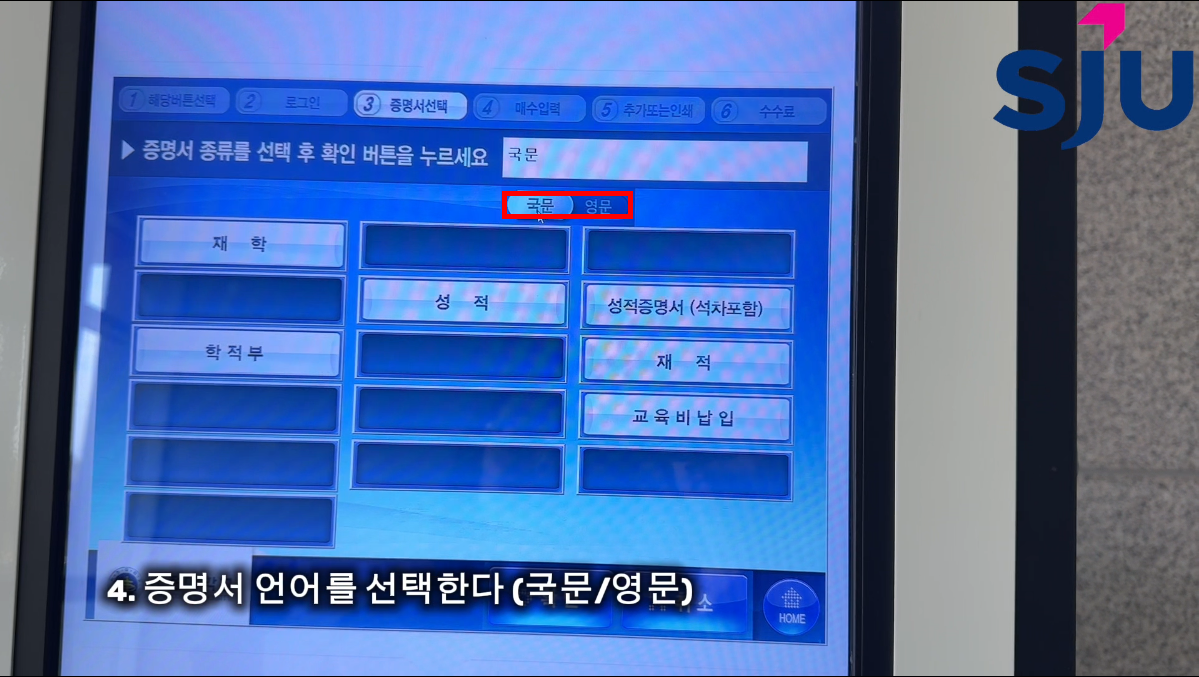 ④ 증명서 언어를 선택한다(국문/영문)